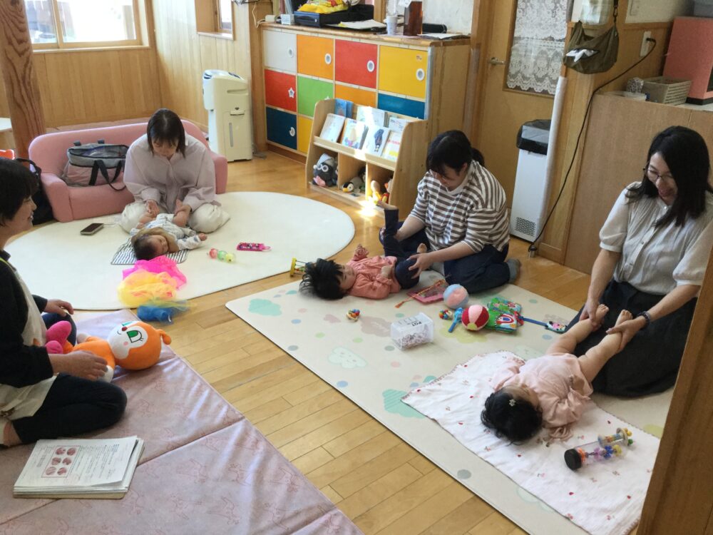新しい季節が到来し、心はワクワクドキドキ、お天気は暑かったり寒かったり。心も体もお疲れモードになりやすいので、ベビーマッサージでママもベビーもリラックスしていただきましたよ(*^-^*) 今回もなおみ先生を講師に、2か月~1歳のお子さんとマ…