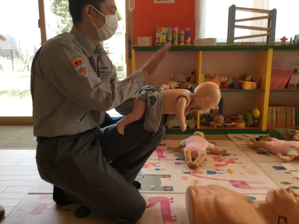 続きを読む2月26日(木)【小児救命救急講習会】 お子様の万が一に備えて、救命救急講習を開催しました。担当の救命士さんから、子どもに多い誤飲や水難事故による窒息についてお話しいただき、実際に赤ちゃんの人形で心肺蘇生法を教えて頂きました。 ♪もしもしか…