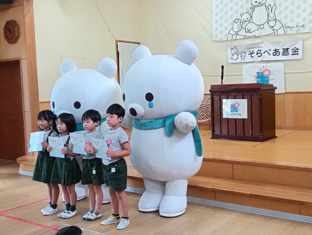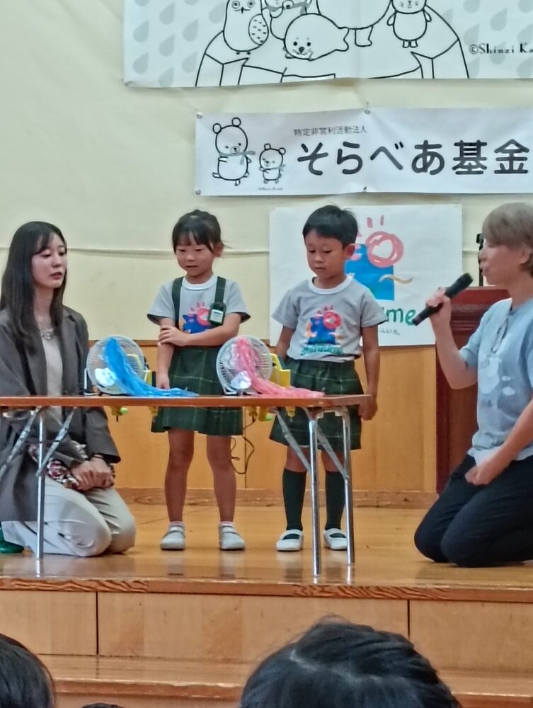 今日は「そらくん」「べあくん」が白梅幼稚園に来て、今、地球が熱くなって北極や南極の友達が困っている事や、地球を守るためにはみんながどう取り組んでいけばいいかそらくん・べあくんと一緒に考えていきました!