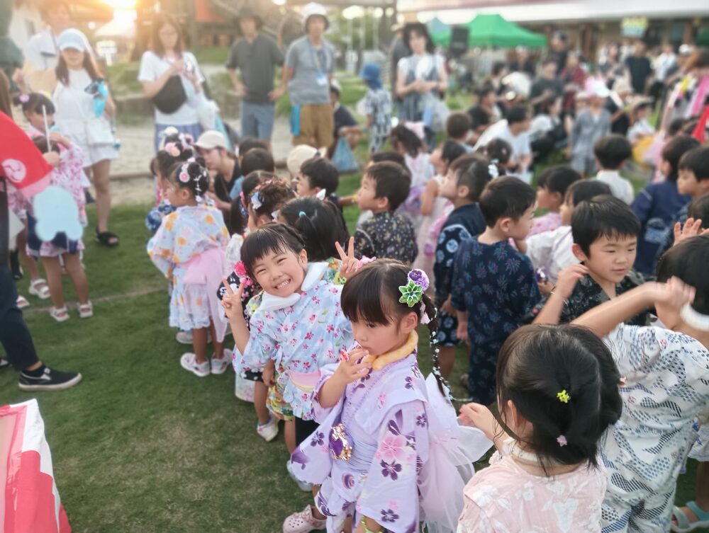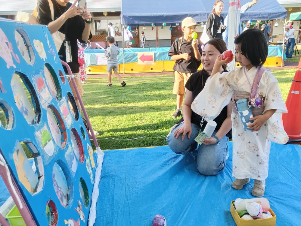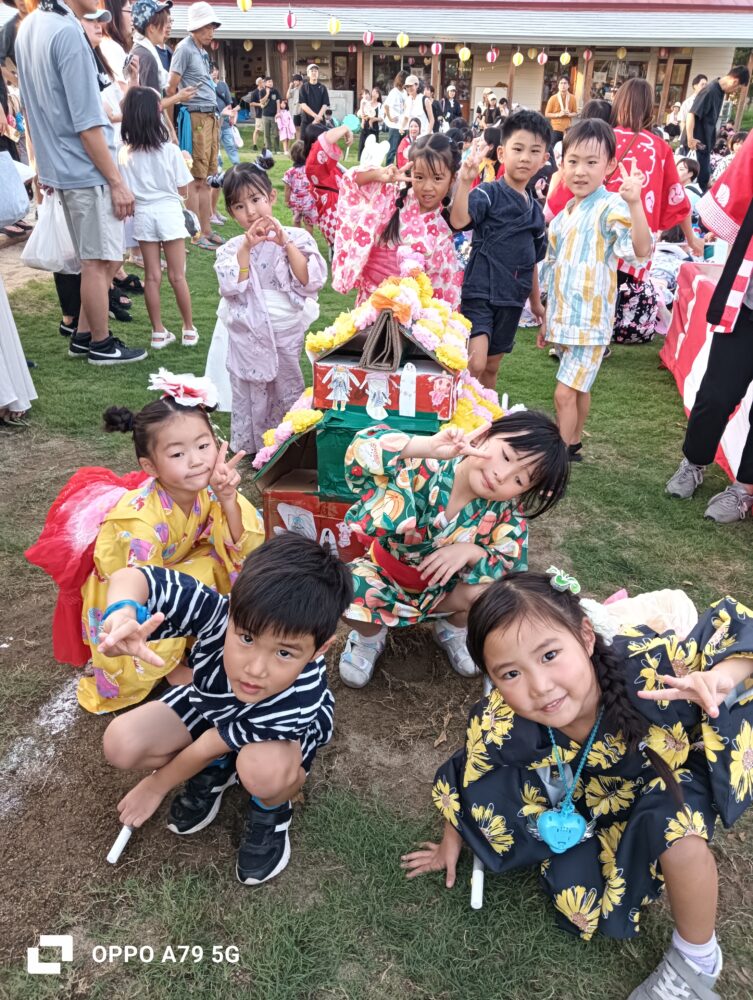 お天気にも恵まれ、チケットでのお買い物やゲームなどお家の方と一緒に楽しむ姿がたくさんみられました!!また、年長さんによる元気いっぱいのお神輿や、和太鼓のリズムに合わせて楽しく盆踊りを踊ることができましたよ!