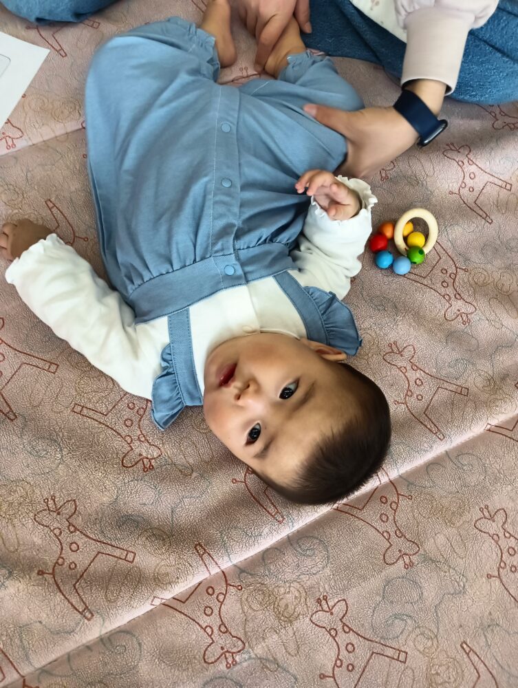 今年度初めてのバギークラブでは、「ベビーマッサージ」を行いました!「成田尚美先生」を講師にお招きし、和やかな雰囲気のなか行われました。