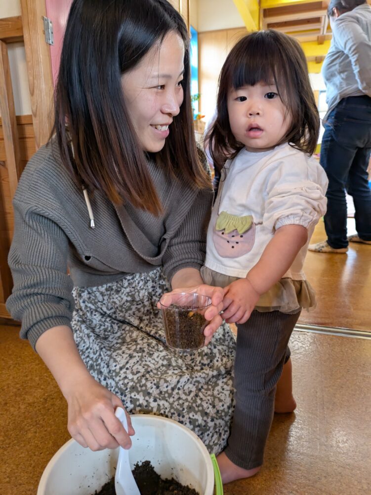美味しく食べたらカップを洗って、トマトの種を植えました。甘いトマトが生りますように☆最後に英語のジュリー先生と一緒に歌や絵本を楽しみましたよ!