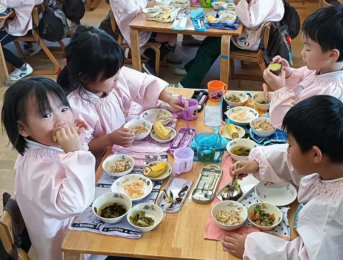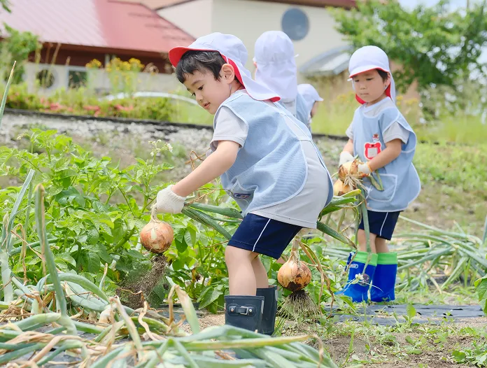 園の畑で子どもたちが育てた野菜や、季節の食材を取り入れ、自然の恵みを感じられる工夫がされています。