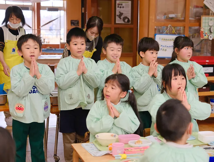 ほかにも、リクエスト給食や、調理担当者による栄養のお話会を開催。秋には炭火でサンマを焼き、生の魚に触れながら、食べ物や命の大切さを学んでいます。